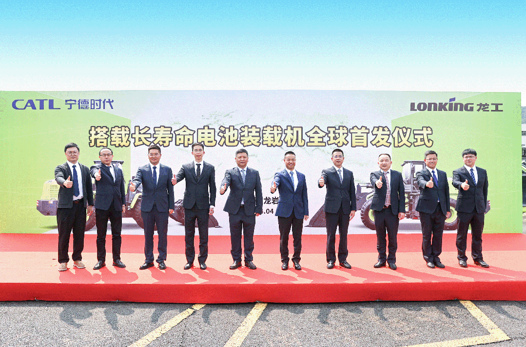 2024年4月28日,中國(guó)龍工攜手寧德時(shí)代在龍工龍巖基地舉行搭載長(zhǎng)壽命電池裝載機(jī)全球首發(fā)儀式。這是繼今年2月中國(guó)龍工與寧德時(shí)代簽署戰(zhàn)略合作協(xié)議掀起裝載機(jī)行業(yè)電動(dòng)化熱潮后,雙方攜手合作的又一重大舉措。寧德時(shí)代商用車執(zhí)行總裁來永杰先生,中國(guó)龍工執(zhí)行董事、副總裁鄭可文先生等領(lǐng)導(dǎo)參加全球首發(fā)儀式。